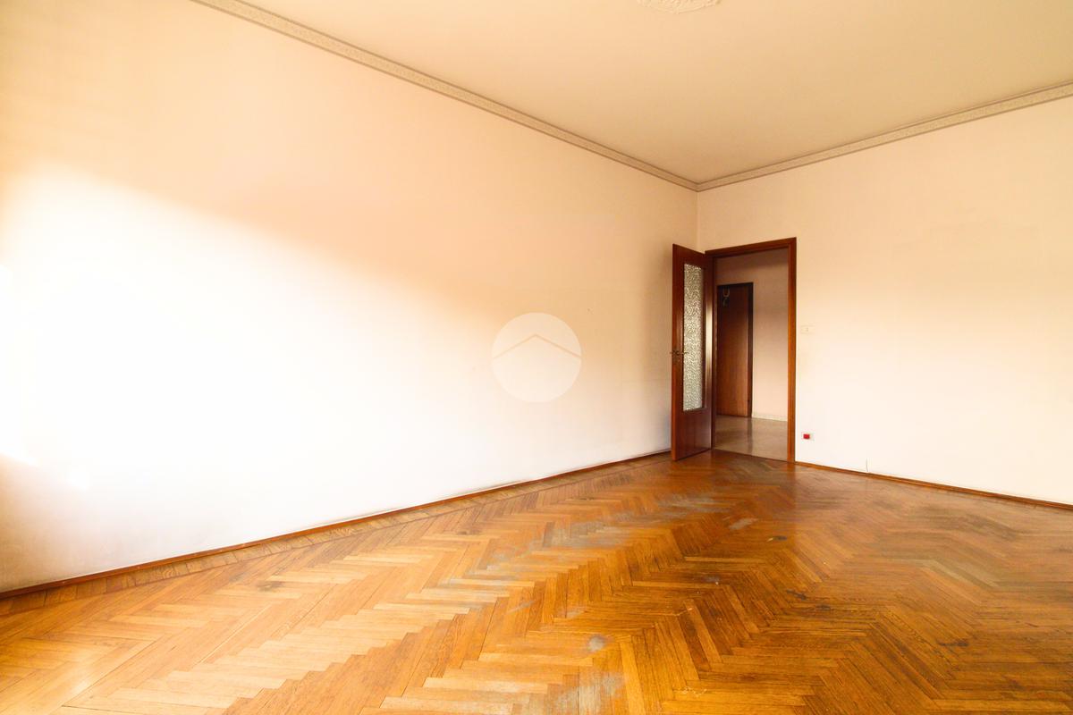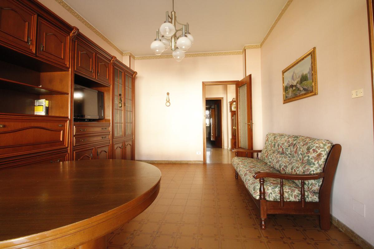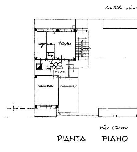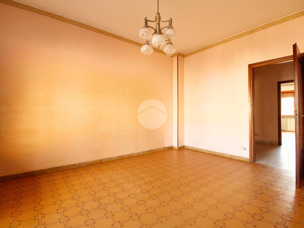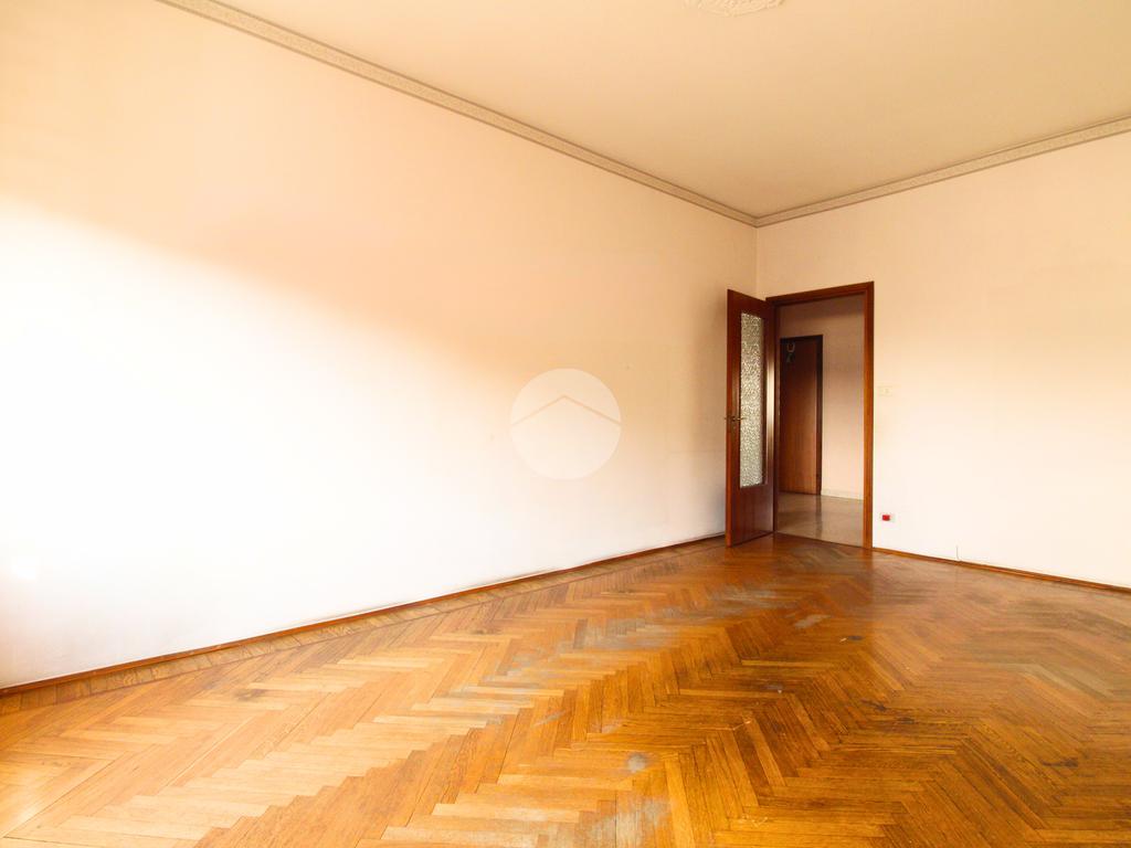 L'appartamento è composto da un generoso ingresso sfruttabile, un ampio soggiorno con possibilità di realizzare un moderno ambiente living, cucinino lineare con finestra, due grandi camere da letto con affaccio sulla via esterna — una delle quali facilmente adattabile a studio o cabina armadio —, servizi, ripostiglio e cantina al piano interrato.
