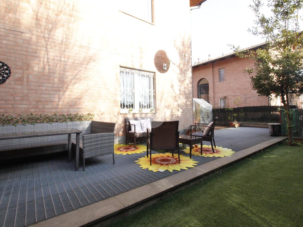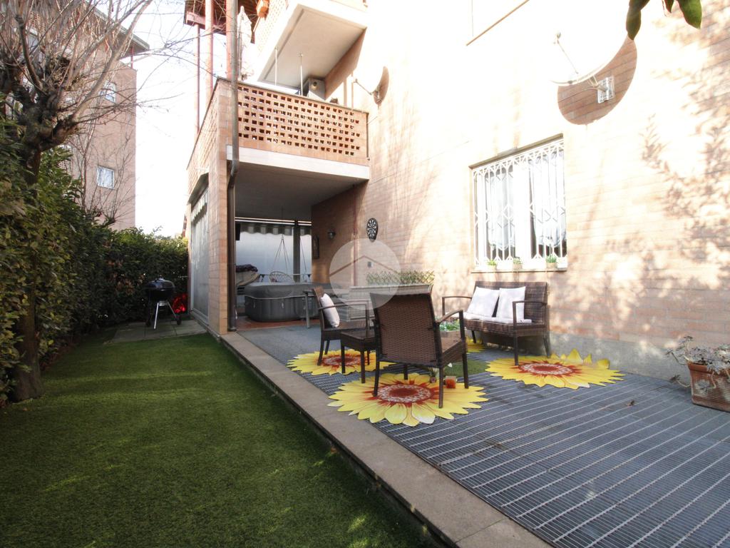 IN PICCOLO CONTESTO CON GIARDINO PRIVATO: proponiamo esclusivo appartamento completamente ristrutturato con giardino privato di 200 mq che circonda tutta la tripla esposizione della soluzione. L'alloggio , rifinito nei minimi dettagli, è composto da un ingresso living su soggiorno con cucina a vista, due camere e bagno con box doccia. Completano la soluzione un ampio box auto soppalcato e una spaziosa cantina anch'essa soppalcata ben sfruttabile. Nel giardino è presente, oltre al verde, una terrazza piastrellata con tenda veranda e tenda estiva, ottima per godersi lo spazio esterno anche in giorntate piovose, inoltre è presnete un impianto di irrigazione. Il riscaldamento è autonomo a pavimento. La posizione strategica permette di raggiungere facilmente i principali servizi e le vie di comunicazione, rendendo questa soluzione abitativa perfetta per chi cerca comodità e funzionalità. Un'opportunità da non perdere per chi desidera vivere in un contesto residenziale ben servito.
