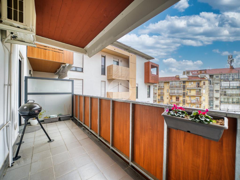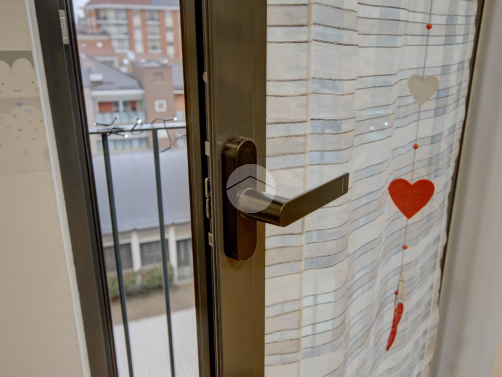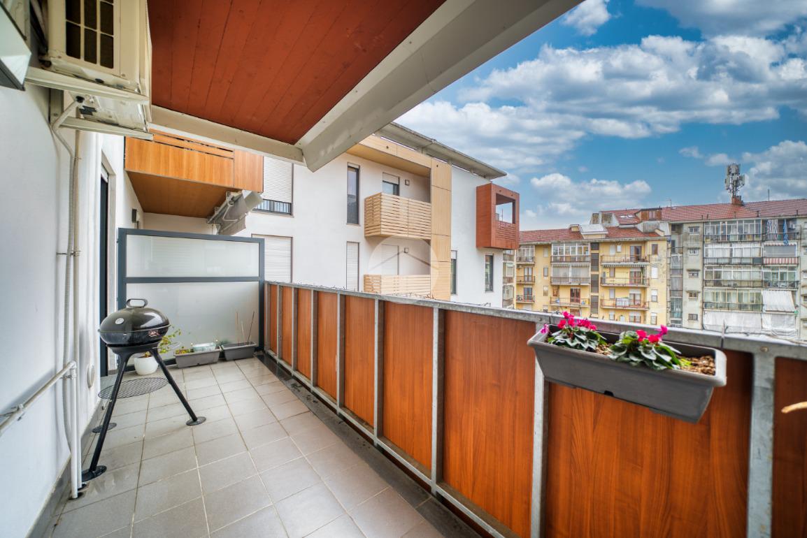 VIA BRENTA : in stabile di recente costruzione privo di barriere architettoniche, con possibilità di autorimesse al piano interrato e gradevole giardino condominiale, proponiamo appartamento sito ad un piano alto con balconi spaziosi e ben sfrutttabili. L'immobile è composto da un soggiorno living con affaccio su ampio balcone, cucinotto semi-abitabile, disimpegno, due camere da letto e bagno con finestra. Dotato di infissi con triplo vetro, zanzariere, portoncino blindato e climatizzatore, la soluzione è adatta a chi vuole unire la praticità degli spazi con le comodità di tutti i primari servizi, essendo ubicato nei pressi del Corso Francia, ma in un contesto tranquillo e silenzioso al tempo stesso. Al piano interrato comoda cantina privata.